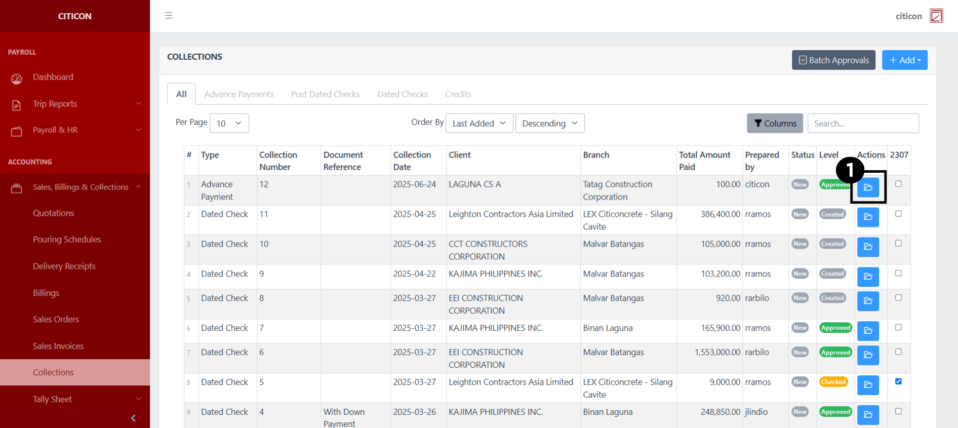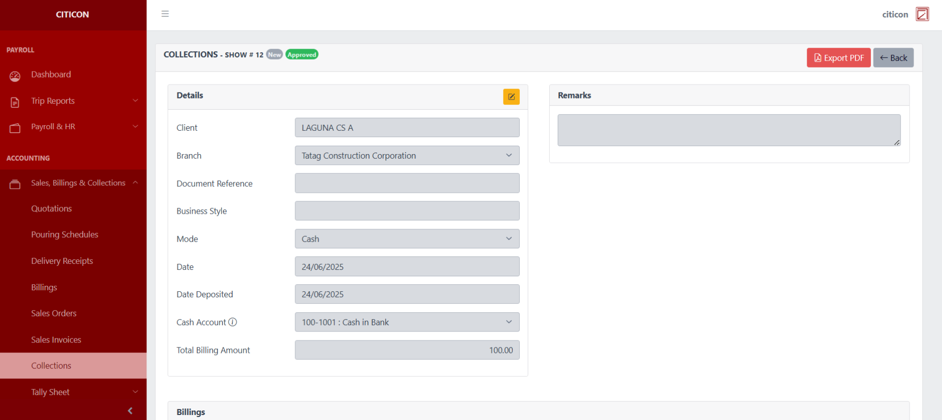 Welcome to Citicon Payroll and Accounting Systems - Collections module. This module is designed for comprehensive management and tracking of all incoming payments, facilitating efficient reconciliation and robust cash flow management.