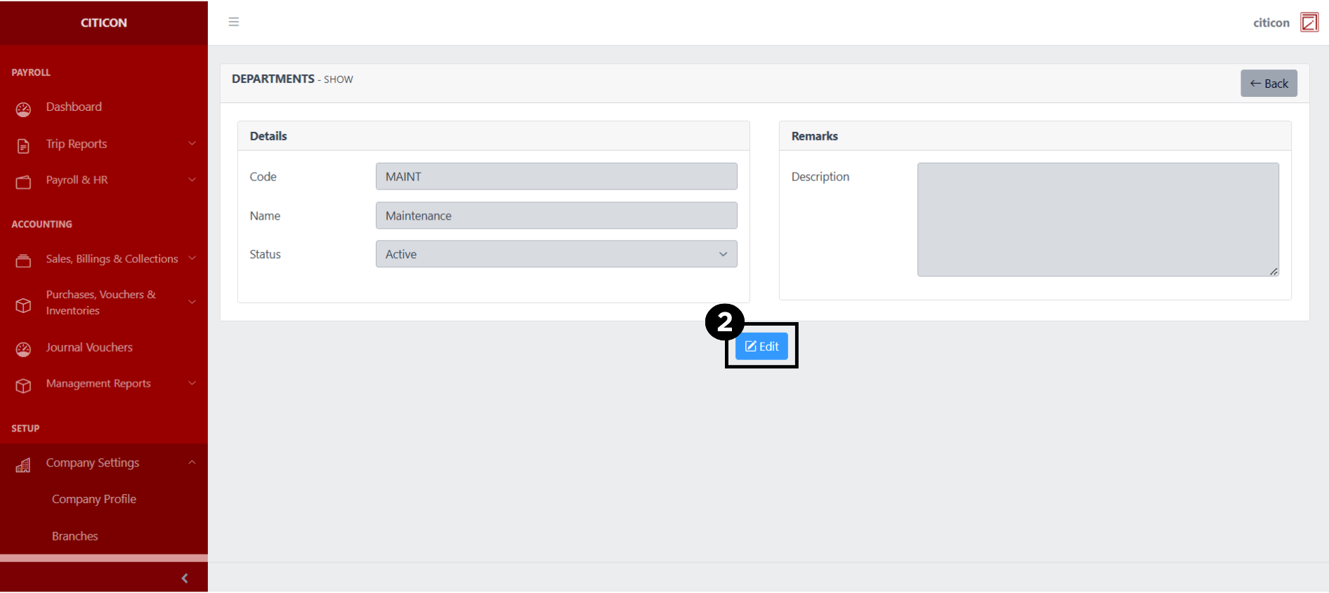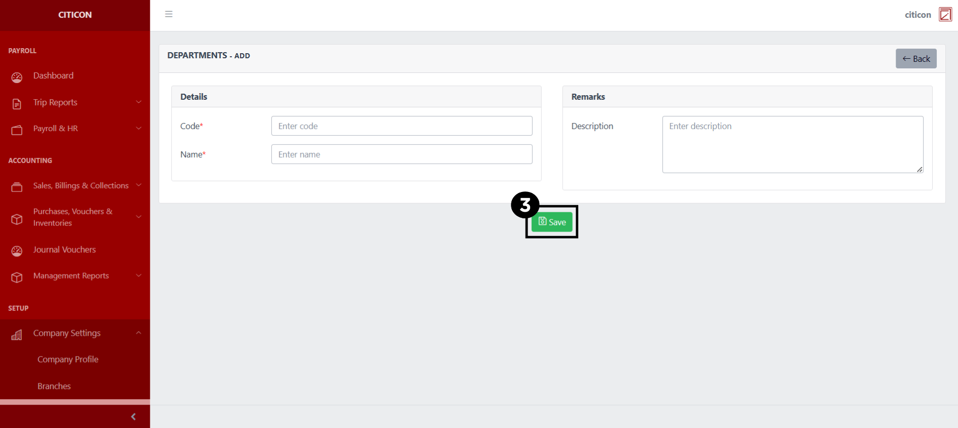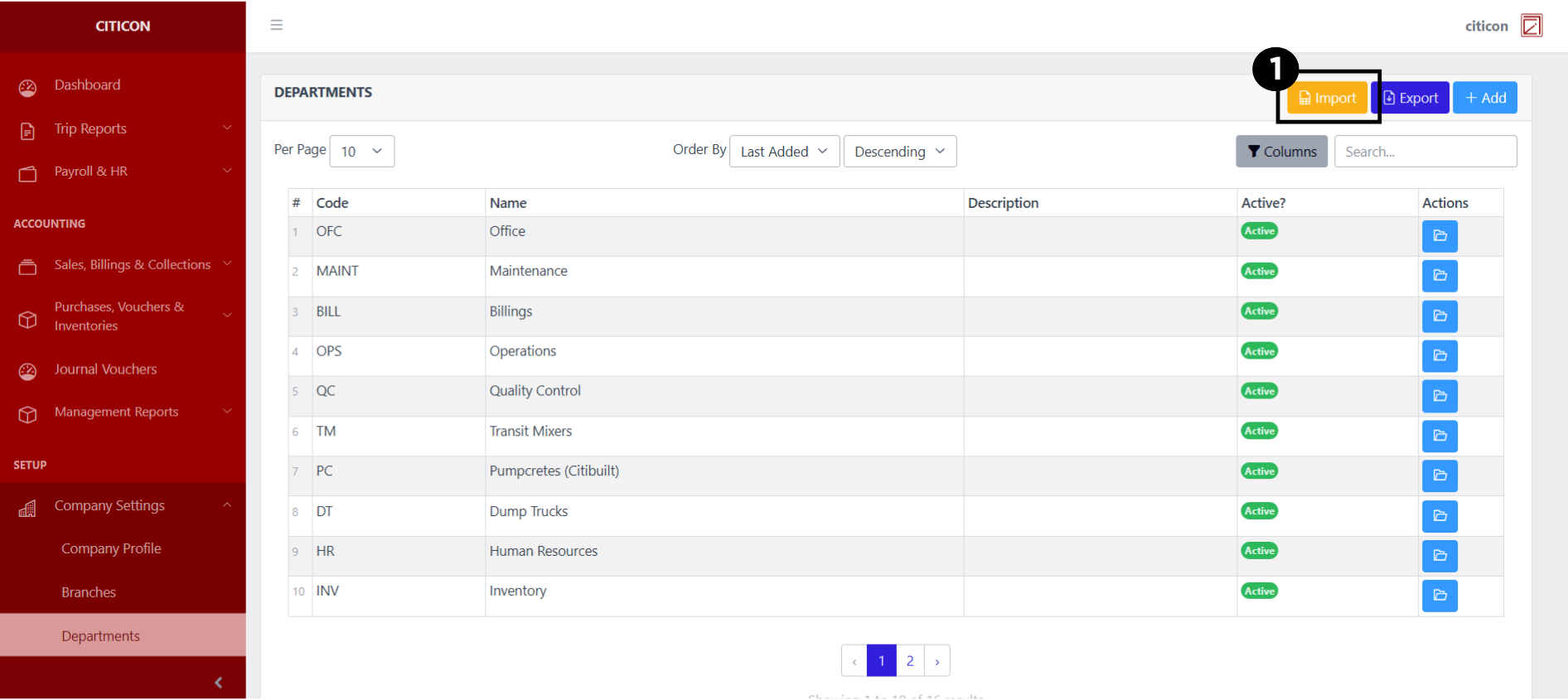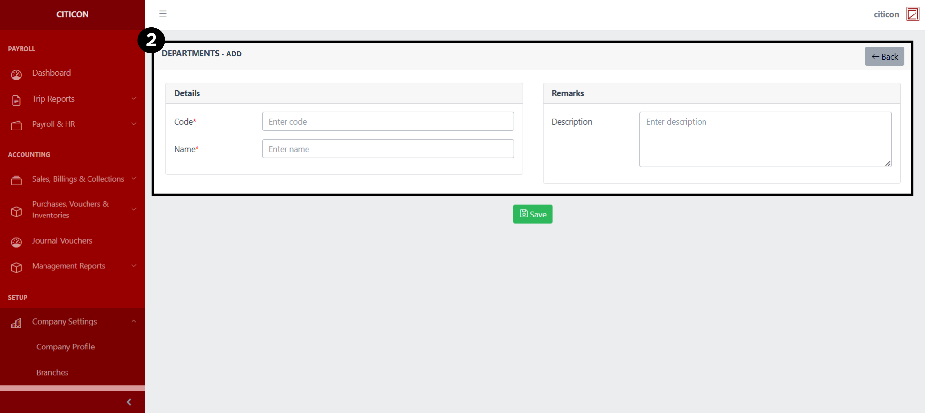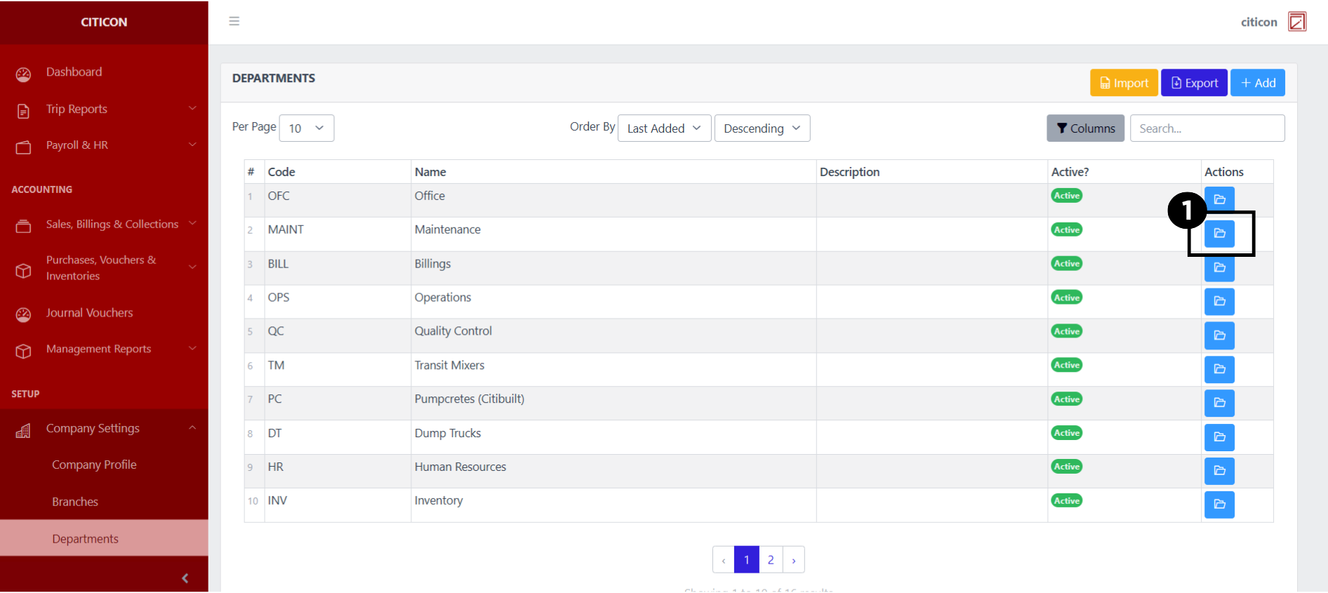 Welcome to Citicon Payroll and Accounting Systems Configuration for Departments. This section is dedicated to organizing your company’s internal structure by managing various departments across the organization.