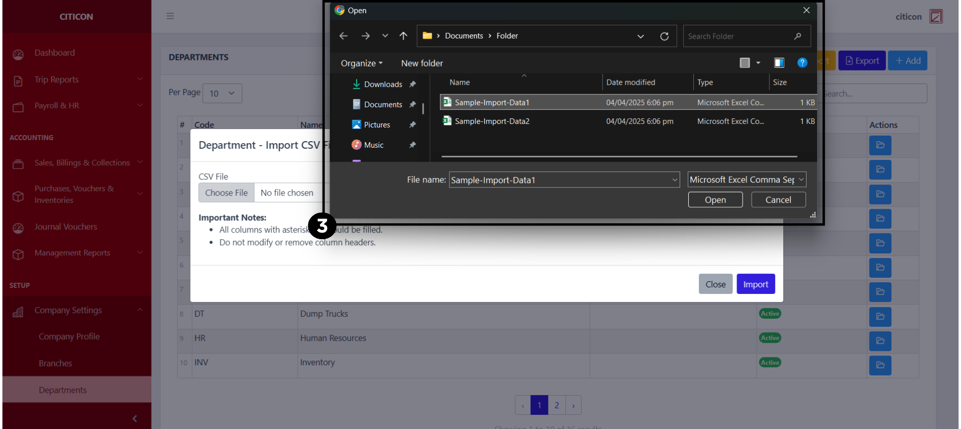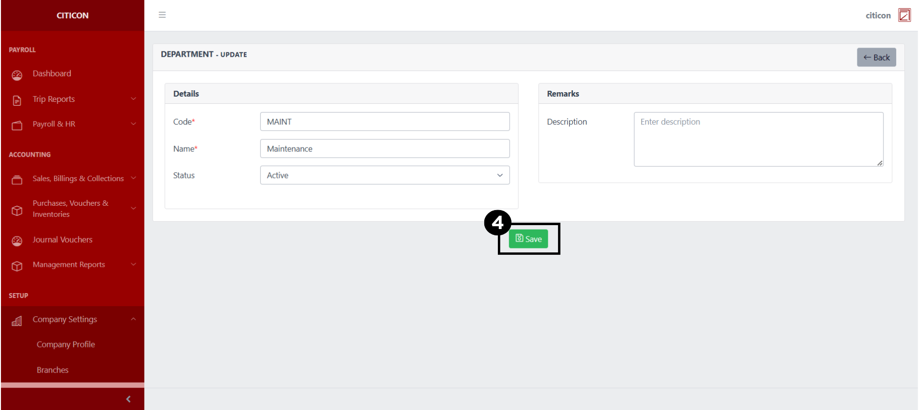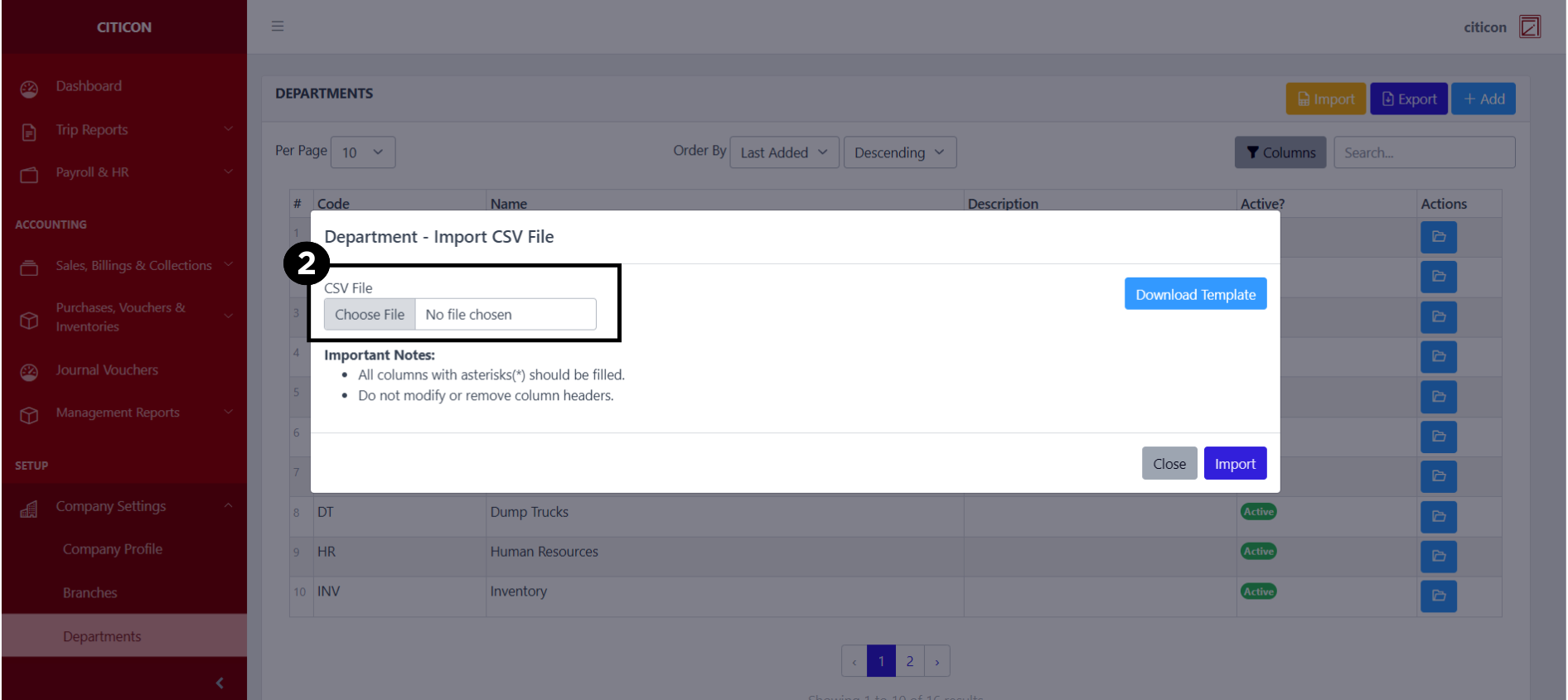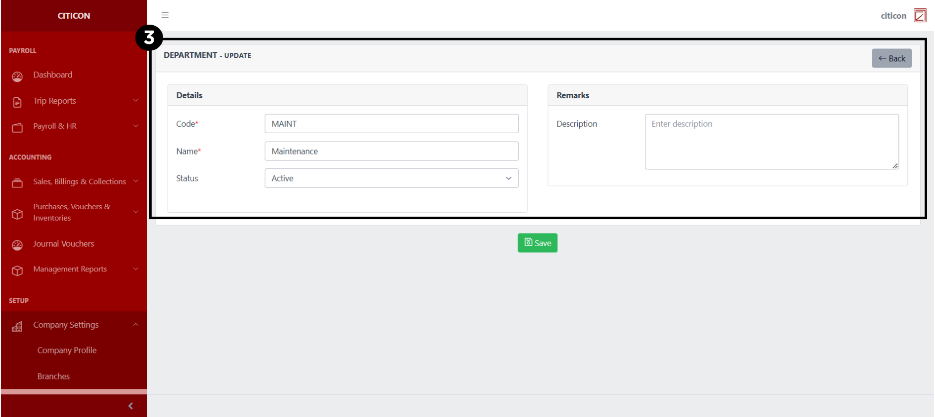 Welcome to Citicon Payroll and Accounting Systems Configuration for Departments. This section is dedicated to organizing your company’s internal structure by managing various departments across the organization.