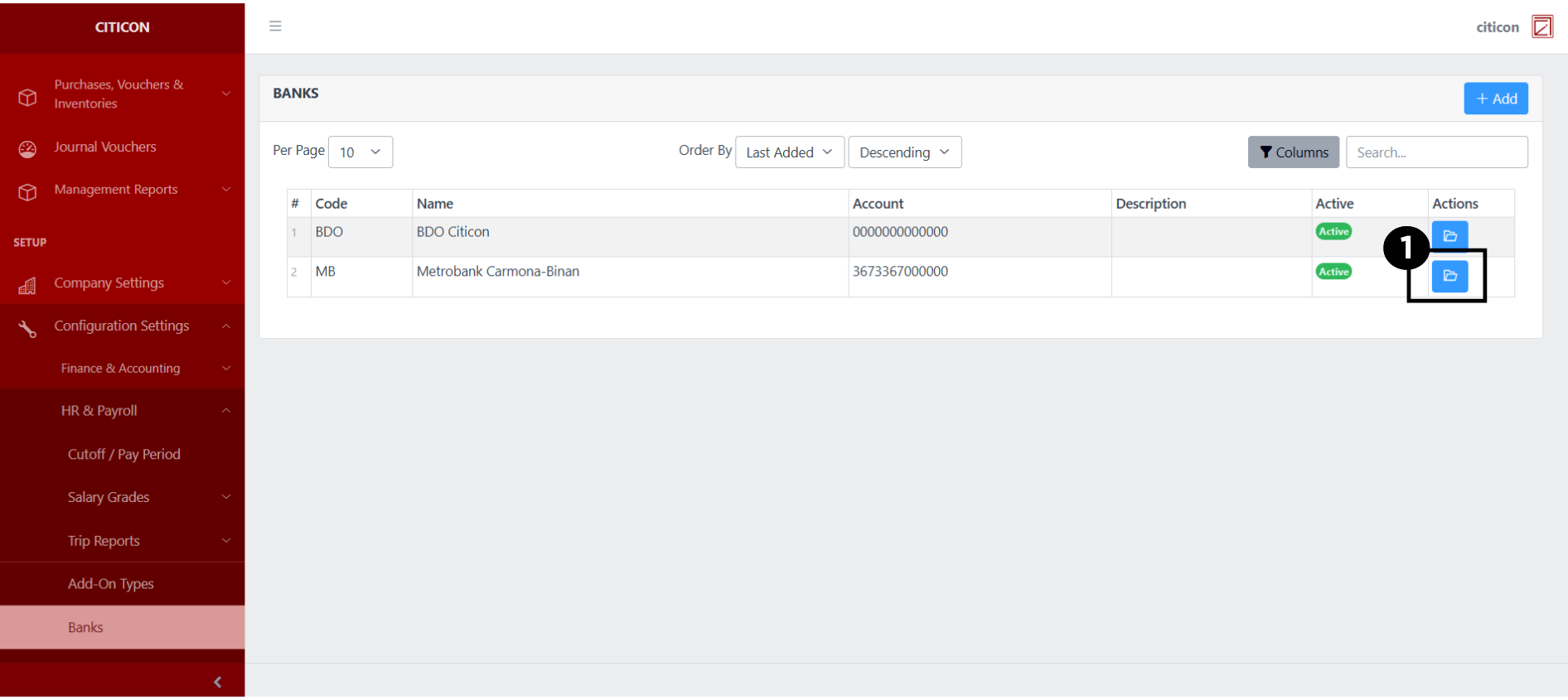 Welcome to Citicon Payroll and Accounting Systems Configuration for Banks. This section is designed to help you manage banking details essential for payroll disbursement and employee salary transactions. Accurate bank setup ensures smooth financial operations and compliance with payroll processing standards.