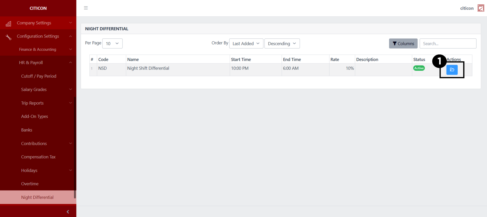 Welcome to Citicon Payroll and Accounting Systems Configuration for Night Differential. This section helps define compensation rates for work rendered during night hours, ensuring compliance with labor standards and fair pay for night shift employees.