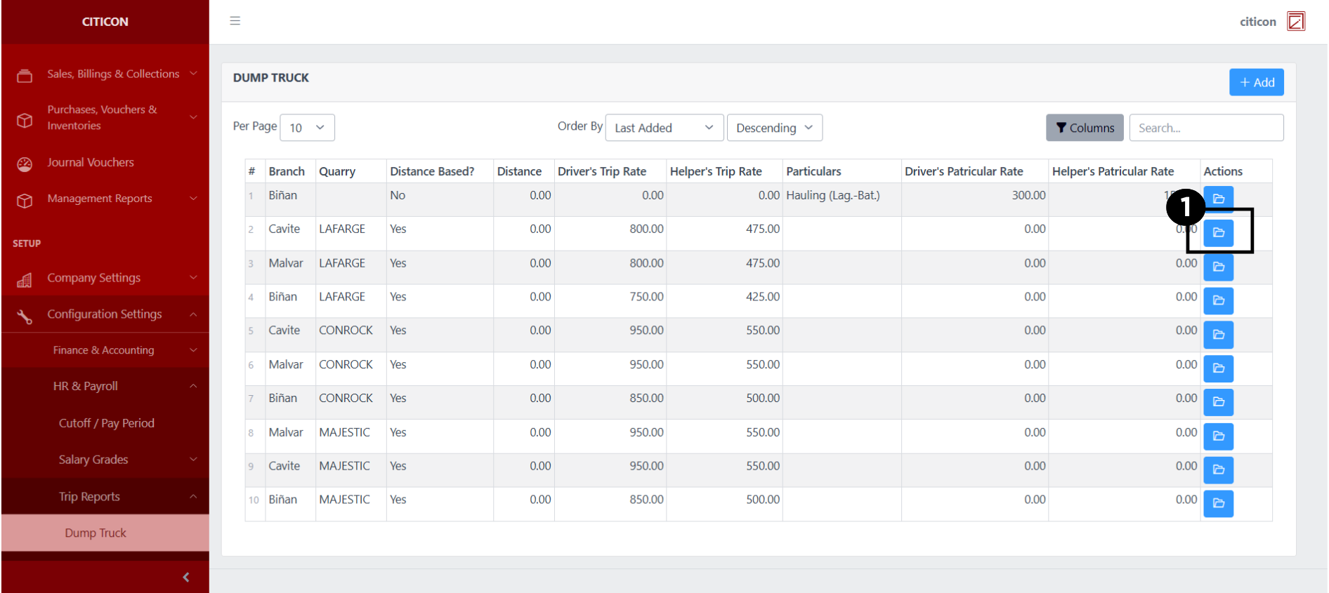 Welcome to Citicon Payroll and Accounting Systems Configuration for Trip Reports – Dump Truck. This module is designed to set up and manage trip-based payroll computation details for dump truck operations, allowing for precision in rate assignment based on routes, distance, and job roles.