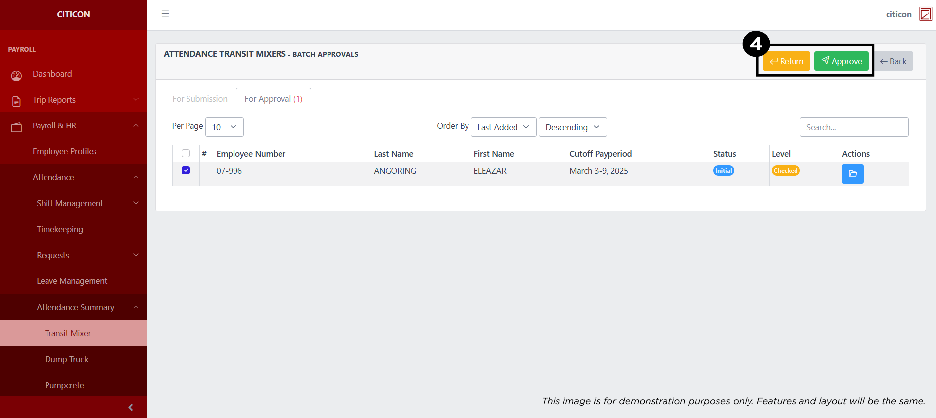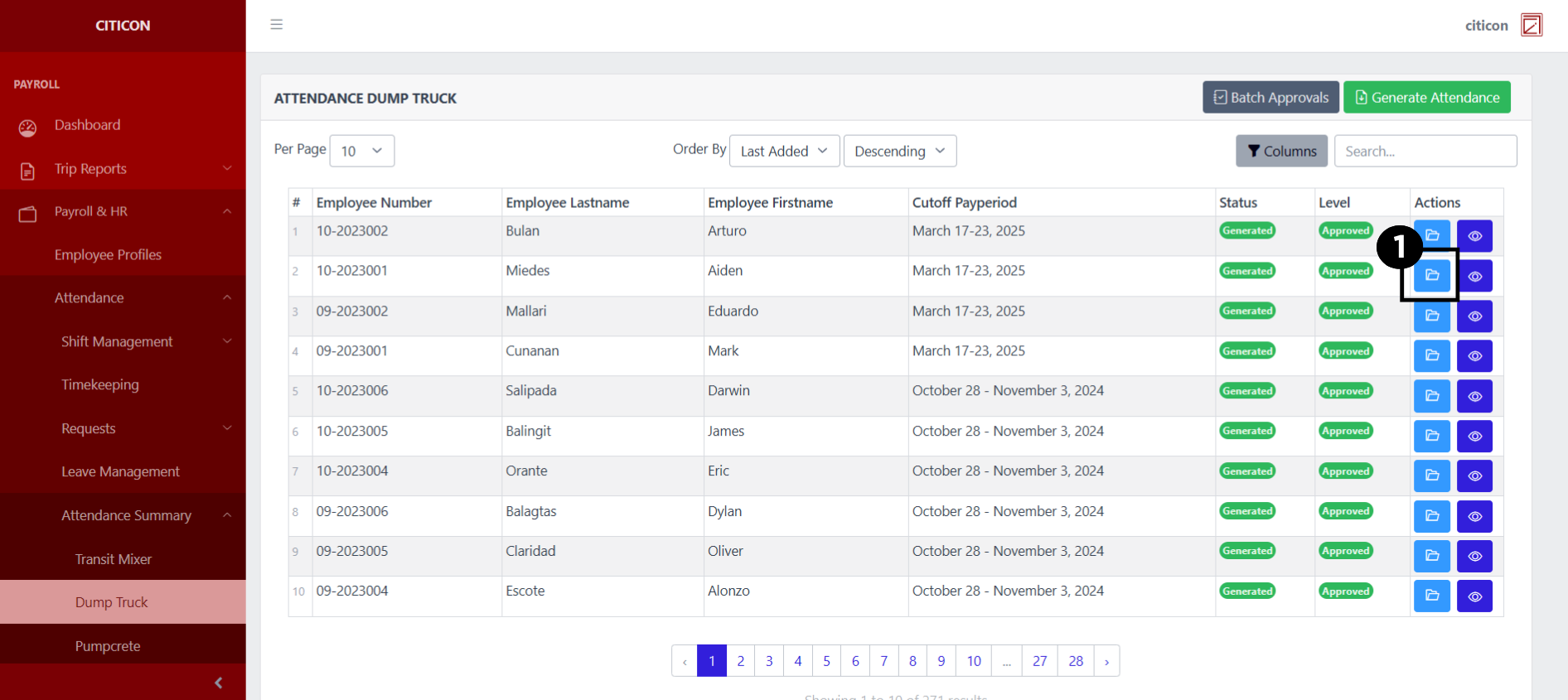 Welcome to Citicon Payroll and Accounting Systems Configuration for Dump Truck under the Attendance Summary section of the Attendance submodule in the Payroll & HR module. This section is designed to manage and consolidate attendance data specific to Dump Truck personnel, enabling accurate payroll processing and streamlined attendance tracking.