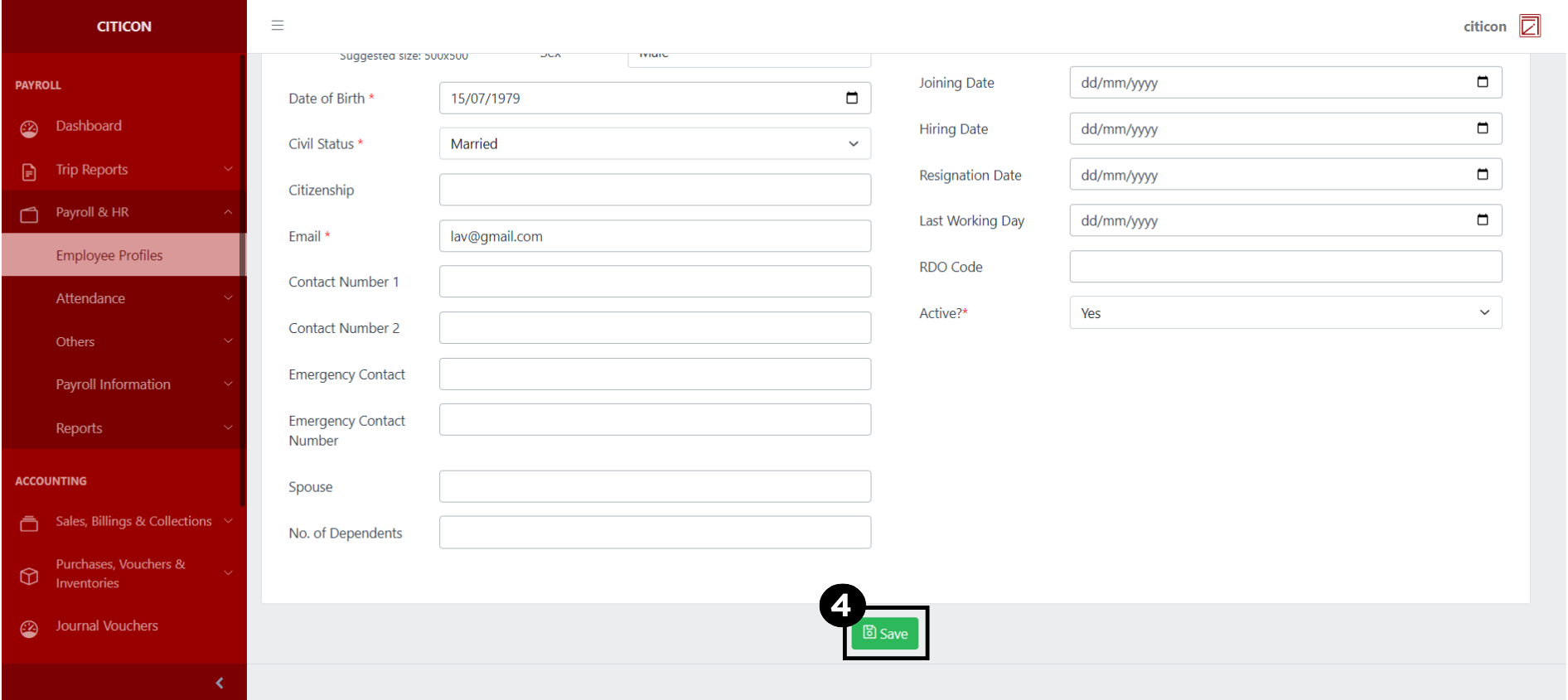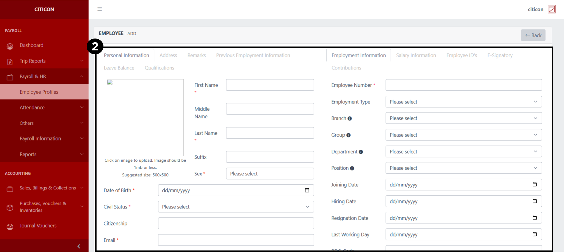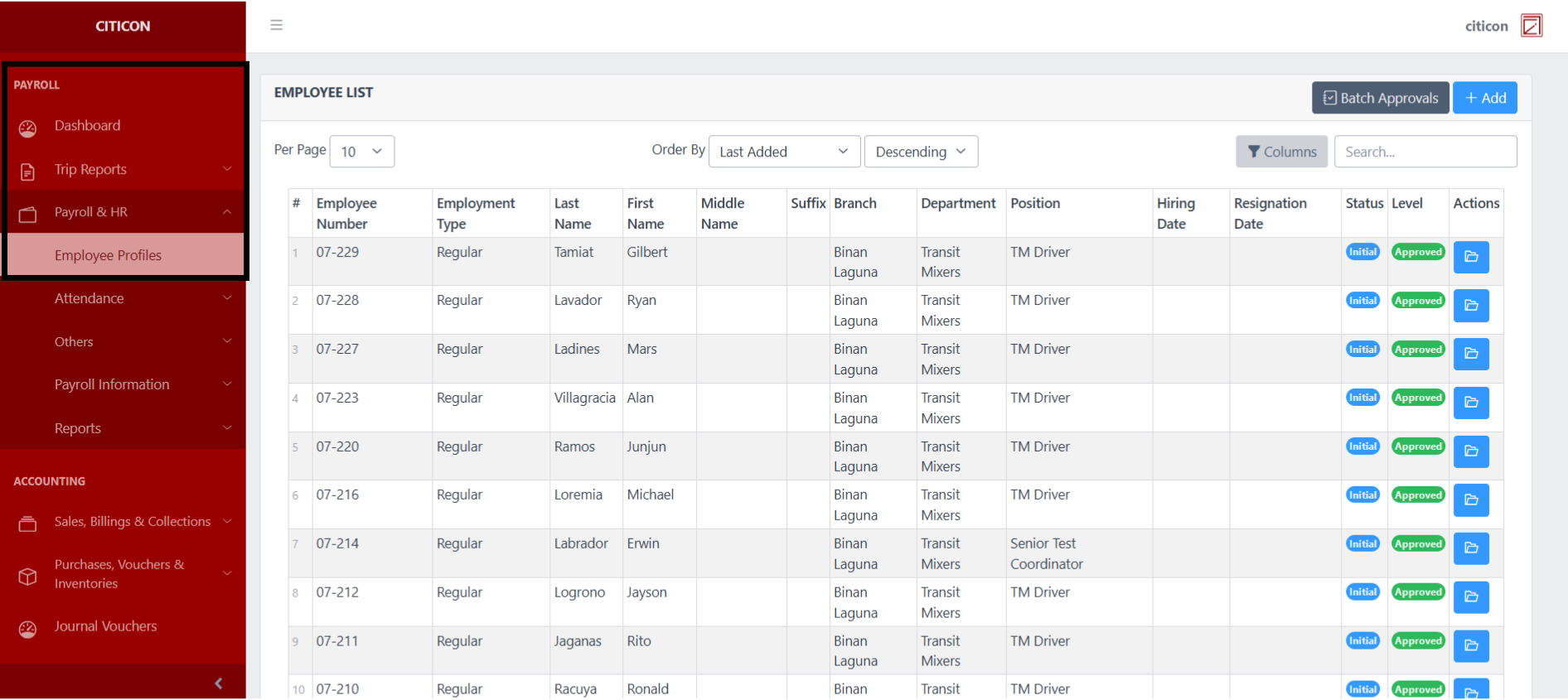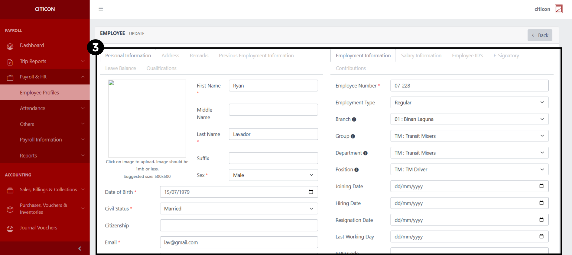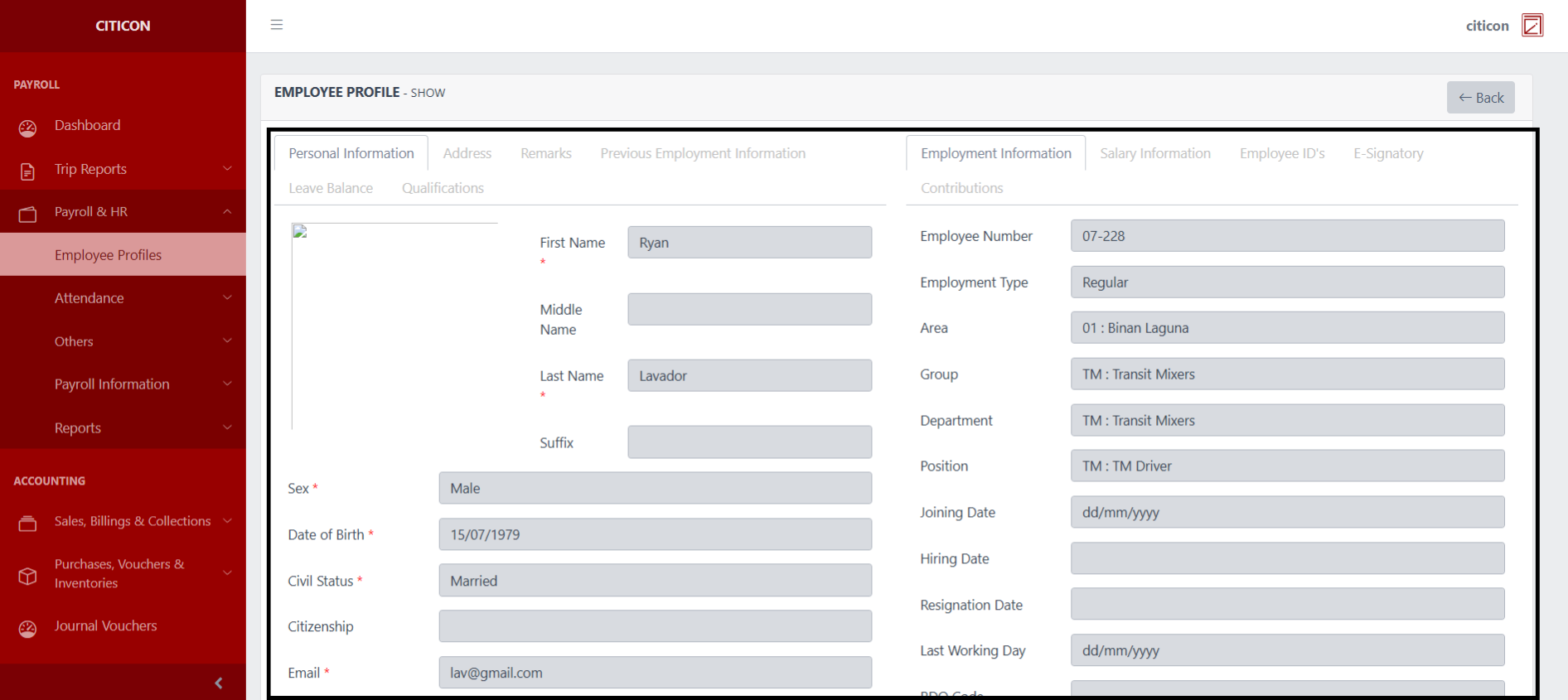 Welcome to Citicon Payroll and Accounting Systems Configuration for Employee Profiles. This section is the central hub for managing all employee-related records that support payroll processing, HR management, and government compliance.