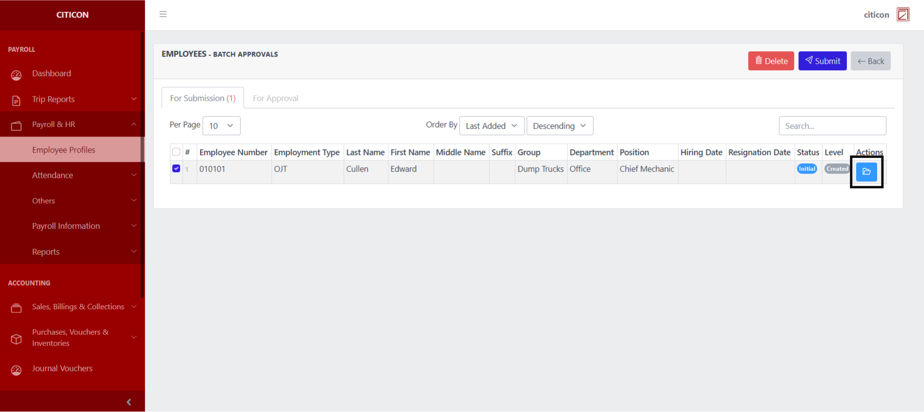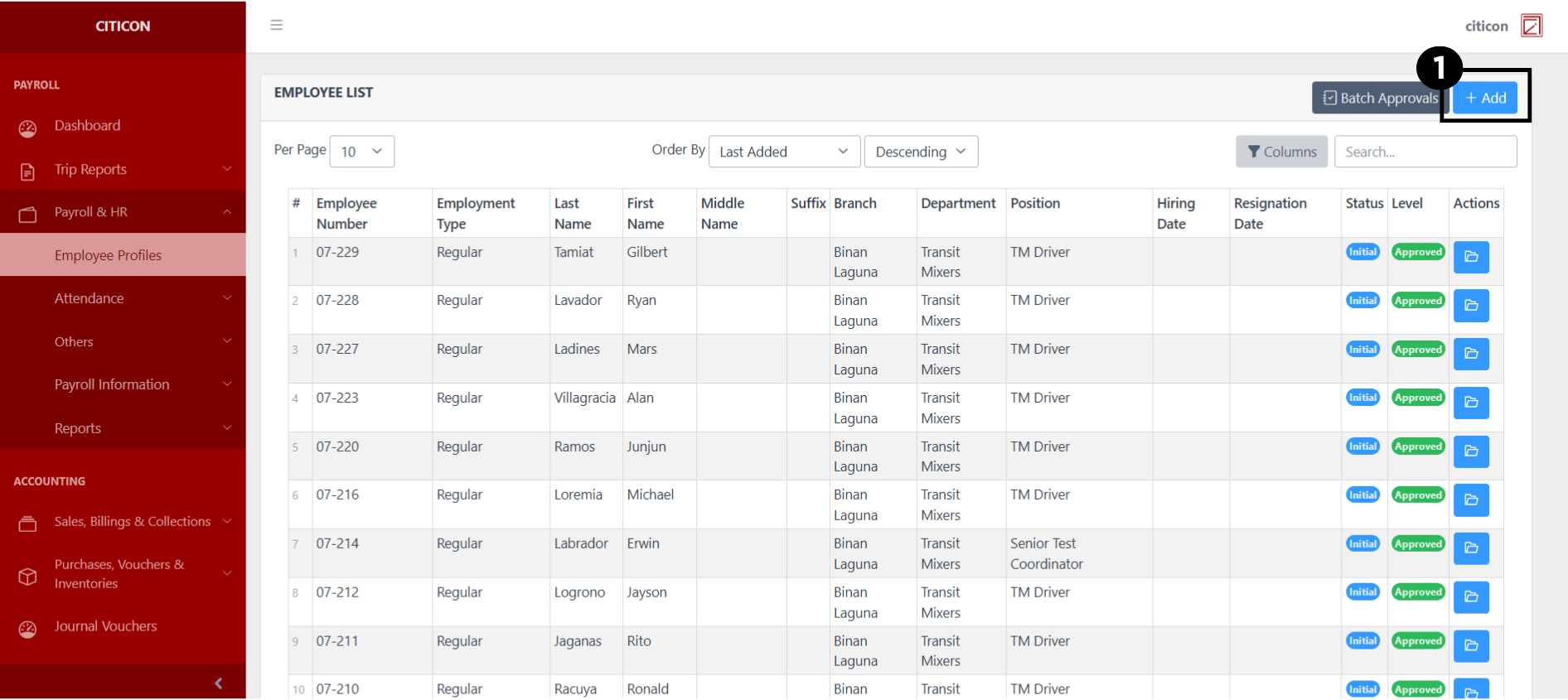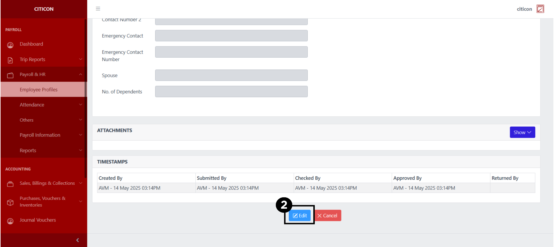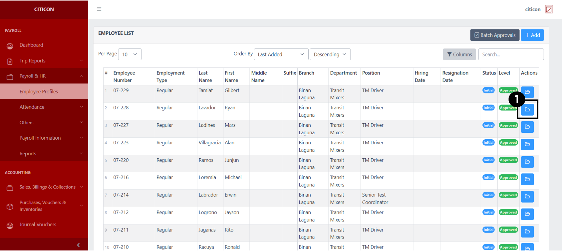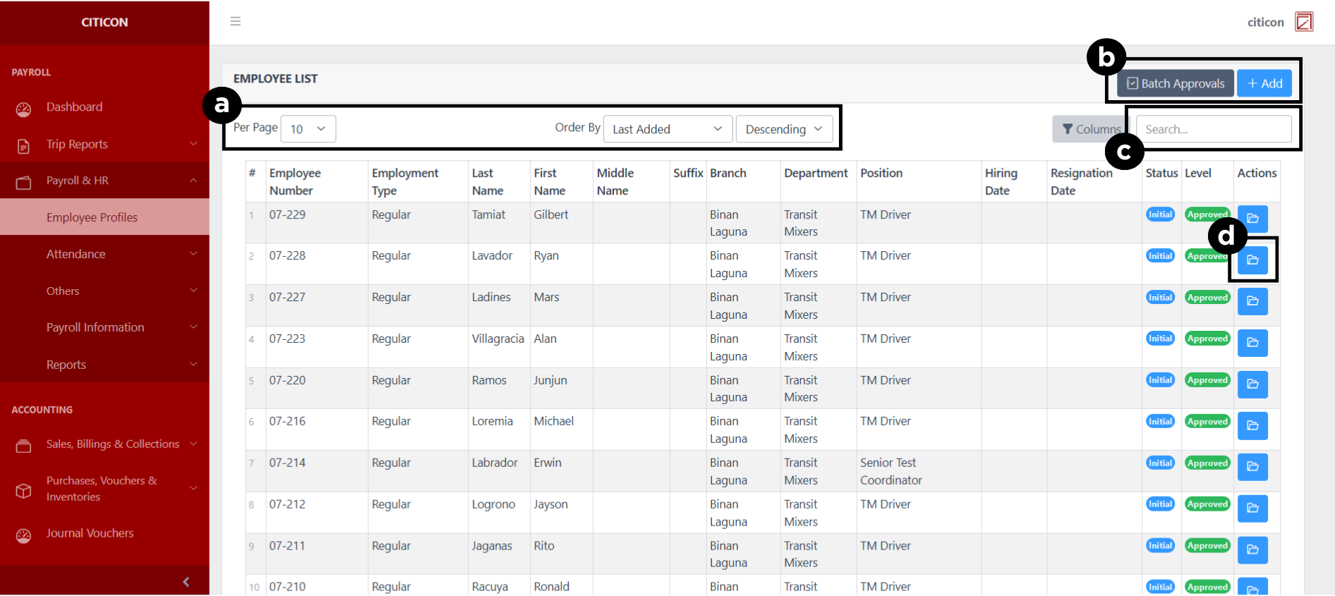 Welcome to Citicon Payroll and Accounting Systems Configuration for Employee Profiles. This section is the central hub for managing all employee-related records that support payroll processing, HR management, and government compliance.