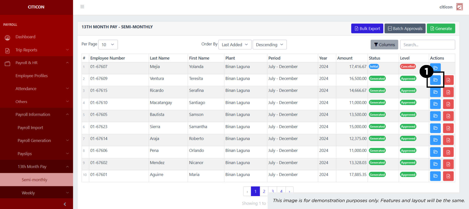 Welcome to the 13th Month Pay – Weekly – Dump Truck section under the Payroll Information module in Payroll & HR. This feature streamlines weekly payroll processing for regular employees by managing employee details, generating payroll entries, and supporting payroll-related actions such as exporting, approving, or canceling entries. It ensures efficient, accurate, and compliant payroll generation for weekly operations.