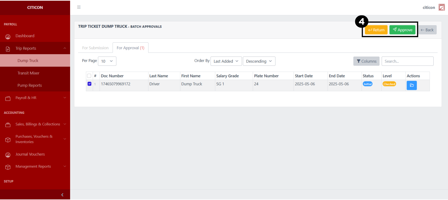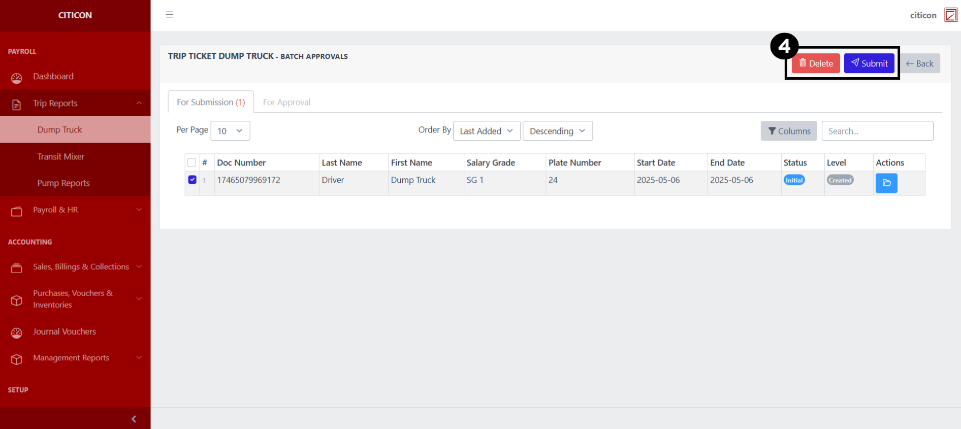 Welcome to Citicon Payroll and Accounting Systems Configuration for Trip Reports - Dump Truck. This section allows you to manage and document trip-based operations for dump trucks, ensuring accurate tracking of work performed, trip frequencies, compensation calculations, and diesel usage. This module supports end-to-end reporting for both drivers and helpers, providing detailed records for each trip, facilitating payroll processing, and promoting accountability in field operations.