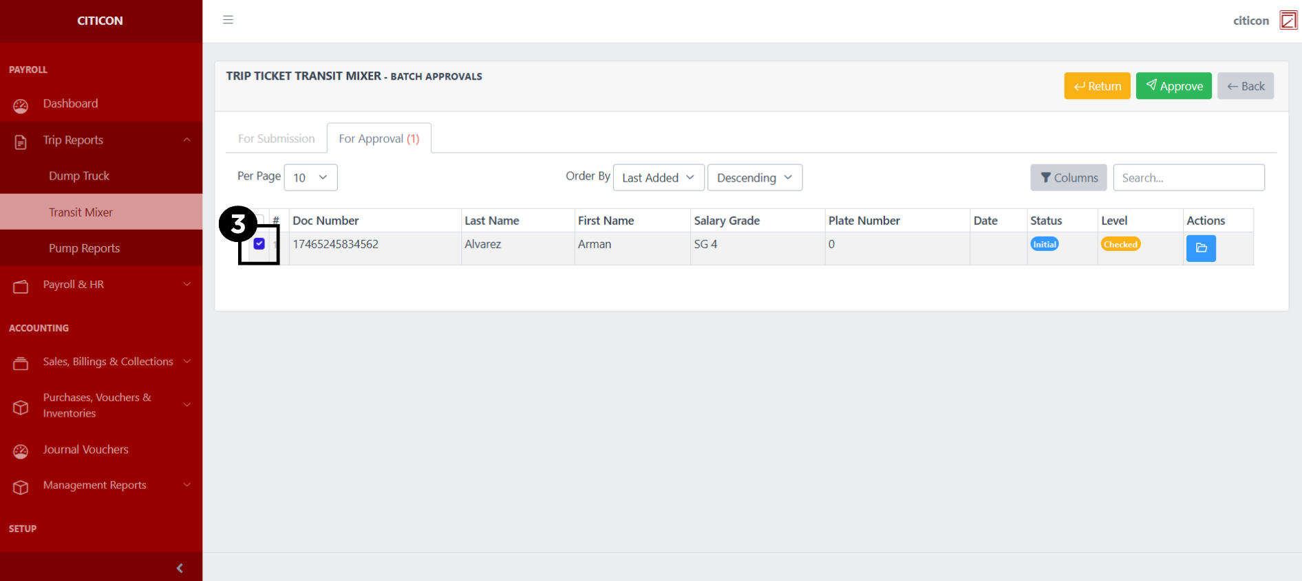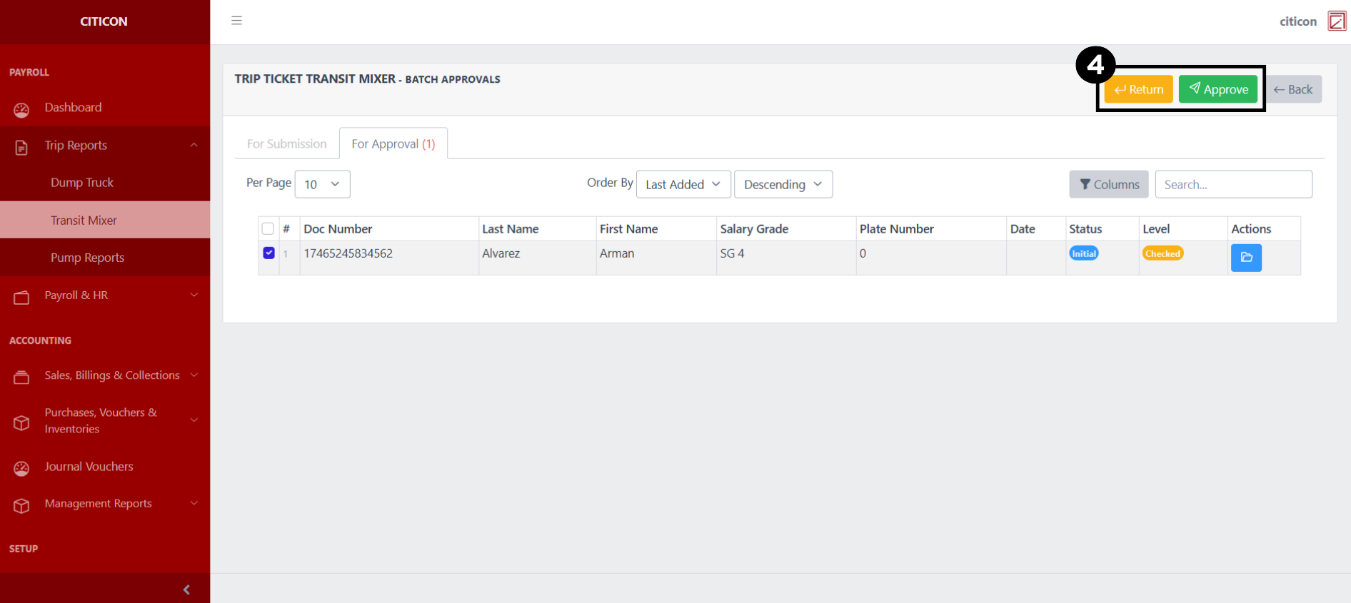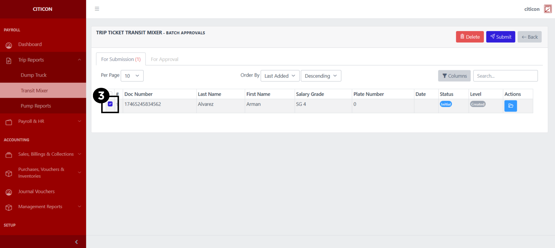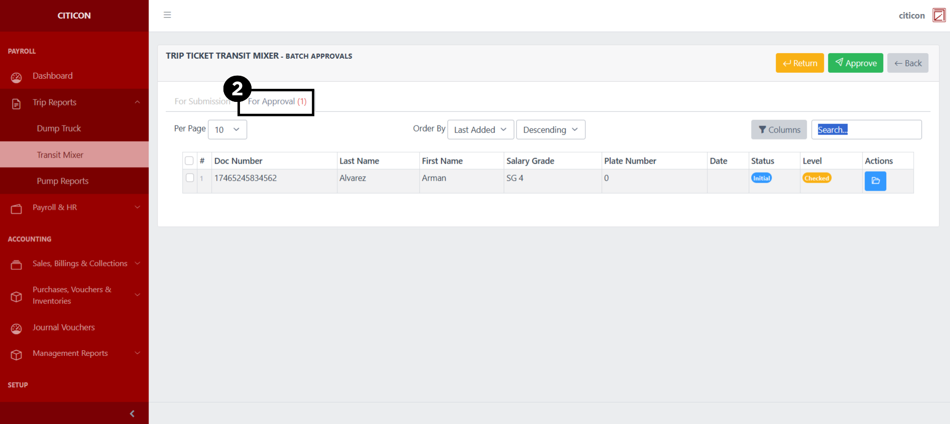 Welcome to Citicon Payroll and Accounting Systems Configuration for Trip Reports - Transit Mixer. This section allows you to log and manage detailed trip data for transit mixer operations, supporting transparent job tracking, compensation calculation, and project-specific reporting. With structured entries for each trip and clear breakdowns of involved resources and costs, this module helps standardize how trip records are submitted, approved, and used in payroll and project analytics.